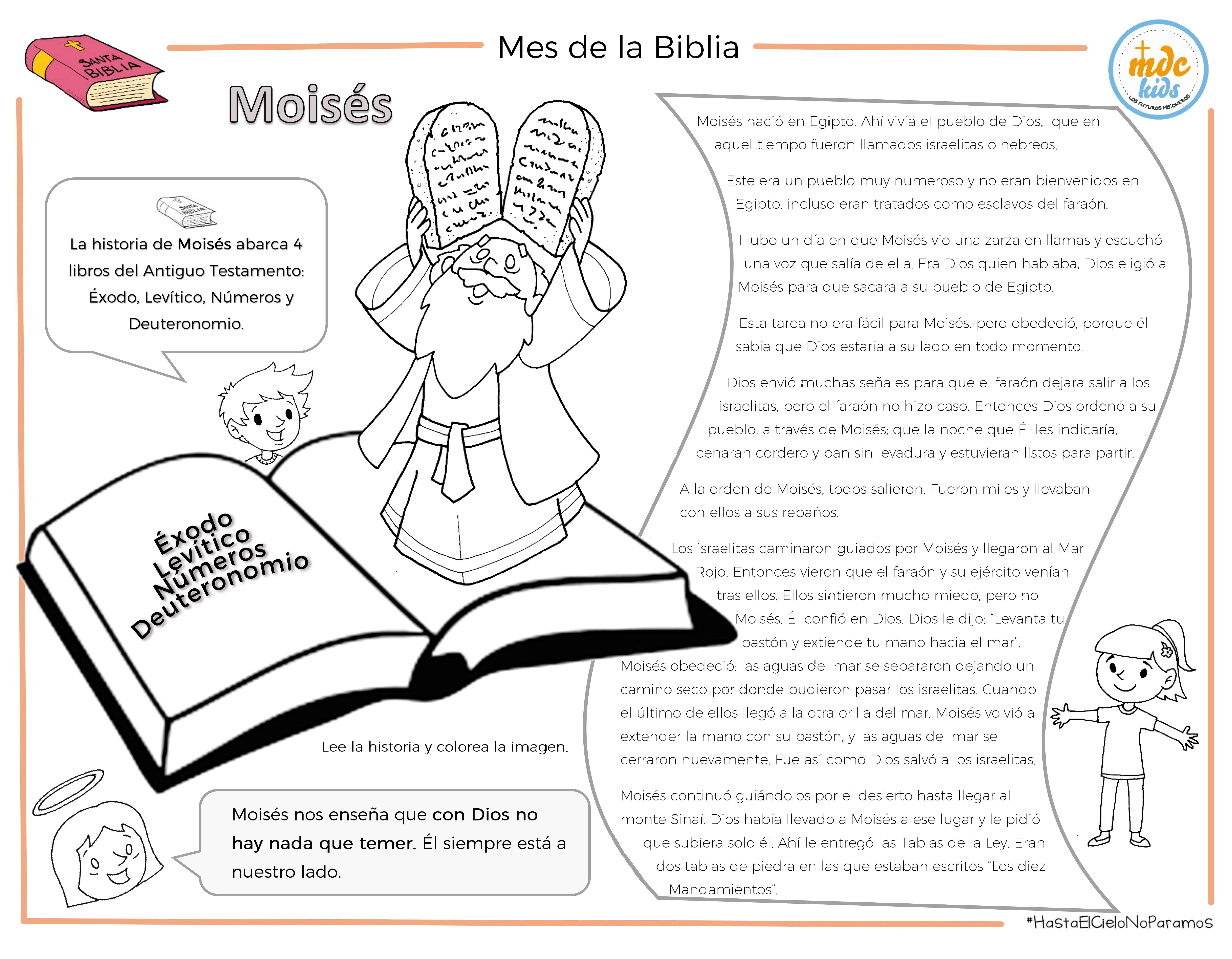 Colorea y completa la frase: Moisés y los 10 mandamientos